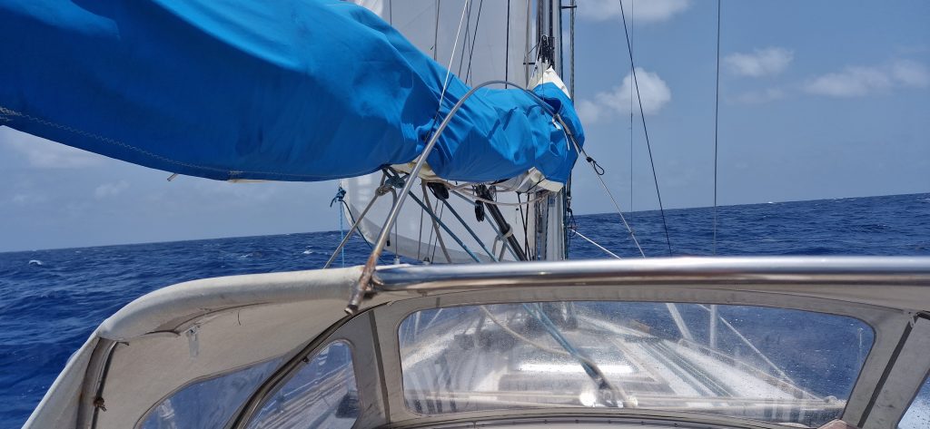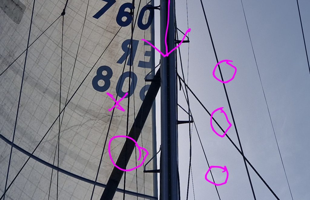 With the spinnaker pole (left circle) and three Dyneema lines (right circles) I managed to…