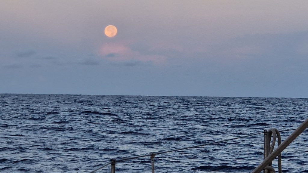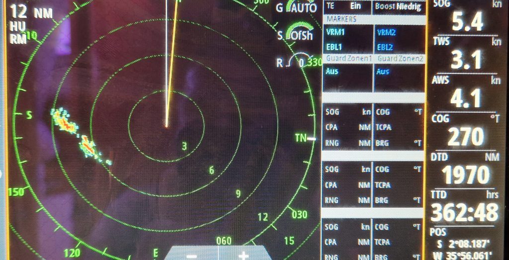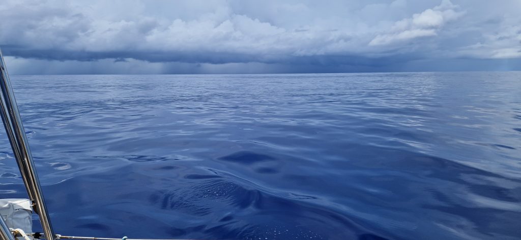 The ses is calm. I have to motor. I can see the heavy rainfall on…